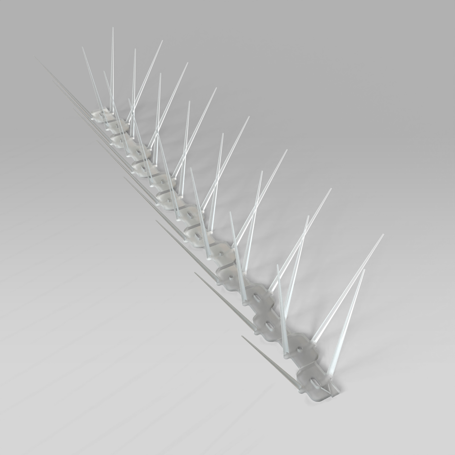 Υλικό 100% πολυκαρβονικό, πρωτογενές χωρίς προσμίξεις. Η διαύγεια του υλικού το κάνει διακριτικό και κομψό, χωρίς να “χτυπάει” στο μάτι. Η ευκαμψία του το βοηθάει να προσαρμόζεται ακόμα και σε κοίλες επιφάνειες. Επίσης διαθέτει εγκοπές κατά μήκος, στις οποίες μπορεί να τσακίσει και να προσαρμοστεί σε γωνίες. 100% ανθεκτικό στην υπεριώδη ακτινοβολία (UV). Ένα εύκολος, γρήγορος, αποτελεσματικός και οικονομικός τρόπος να απαλλαγείτε από ανεπιθύμητες επισκέψεις πουλιών. Δεν τραυματίζει τα πουλιά και τον άνθρωπο. Τοποθετείται πολύ εύκολα με σιλικόνη ή βίδες. Προσαρμόζεται σε περβάζια, κουπαστές, ταμπέλες, ταράτσες, κεραμίδια και όπου αλλού υπάρχει πρόσβαση για τα περιστέρια.